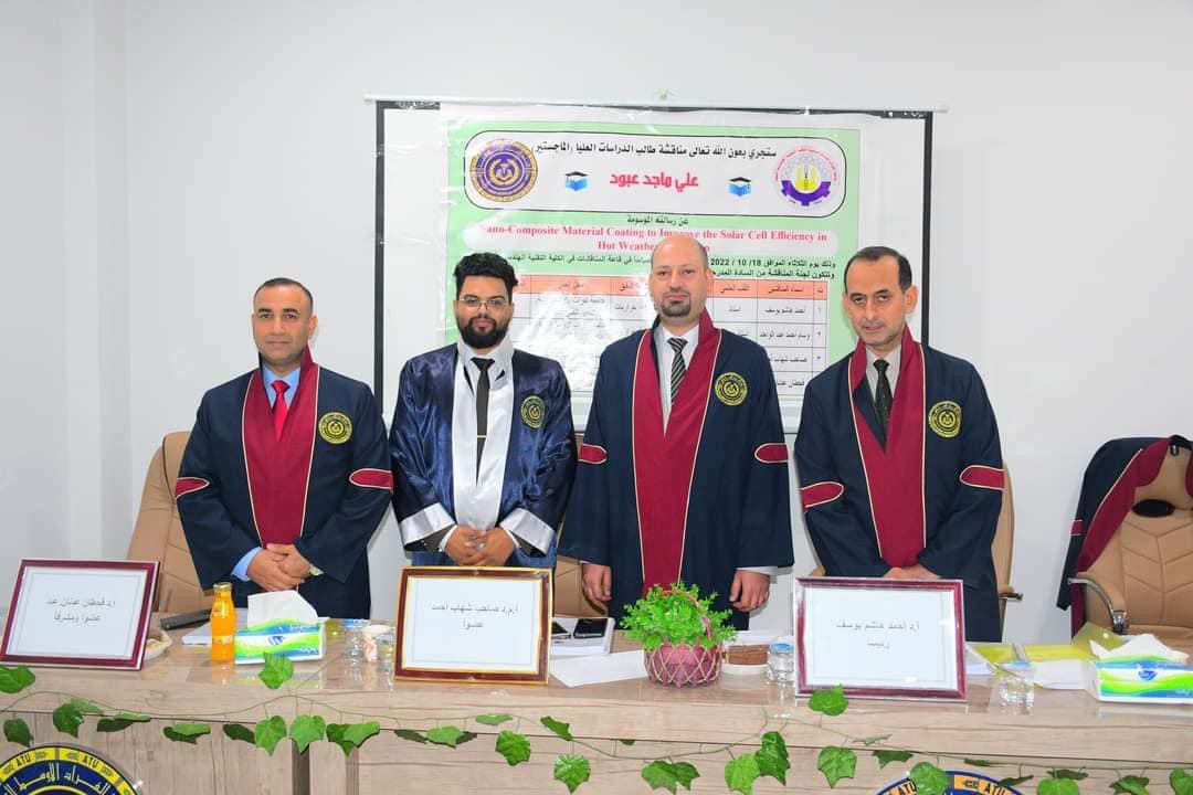 السيد عميد المعهد التقني الرميثة عضوا ومشرفا في لج... شارك السيد عميد المعهد الاستاذ الدكتور قحطان عدنان الفتلاوي كعضوا ومشرفا في لجنة مناقشة رسالة ماجستير بعنوان (طلاء مادة مركبة نانوية لتحسين كفاءة الخلايا الشمس...